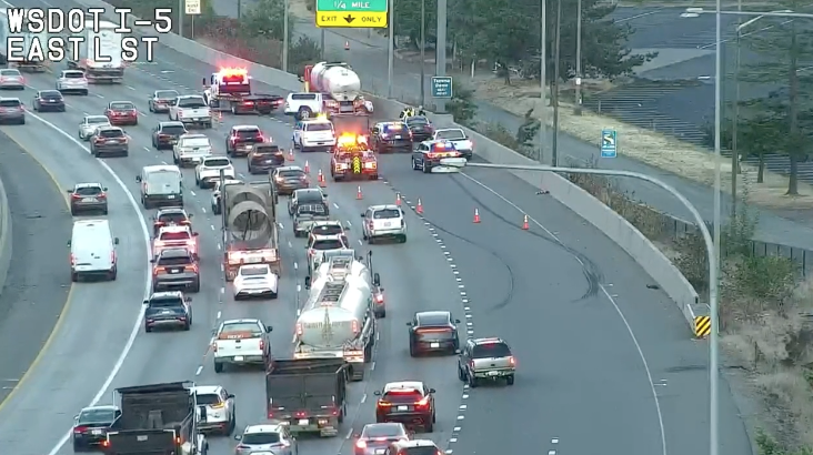 È¿äÀÏ À̸¥ ¾ÆÄ§, ŸÄÚ¸¶µ¼ Àα٠I-5 ³²ÂÊ ¹æ¸é¿¡¼ À¯Á¶ Æ®·°ÀÌ Ãæµ¹»ç°í¸¦ ÀÏÀ¸ÄÑ Ãâ±Ù±æ ±³ÅëÀÌ Å©°Ô È¥ÀâÇß½À´Ï´Ù. ¿ö½ÌÅÏÁÖ ±³Åë±¹(WSDOT)Àº Á¤Ã¼ ±¸°£ÀÌ ¾à 4¸¶ÀÏ¿¡ ´ÞÇß´Ù°í ÀüÇß½À´Ï´Ù.