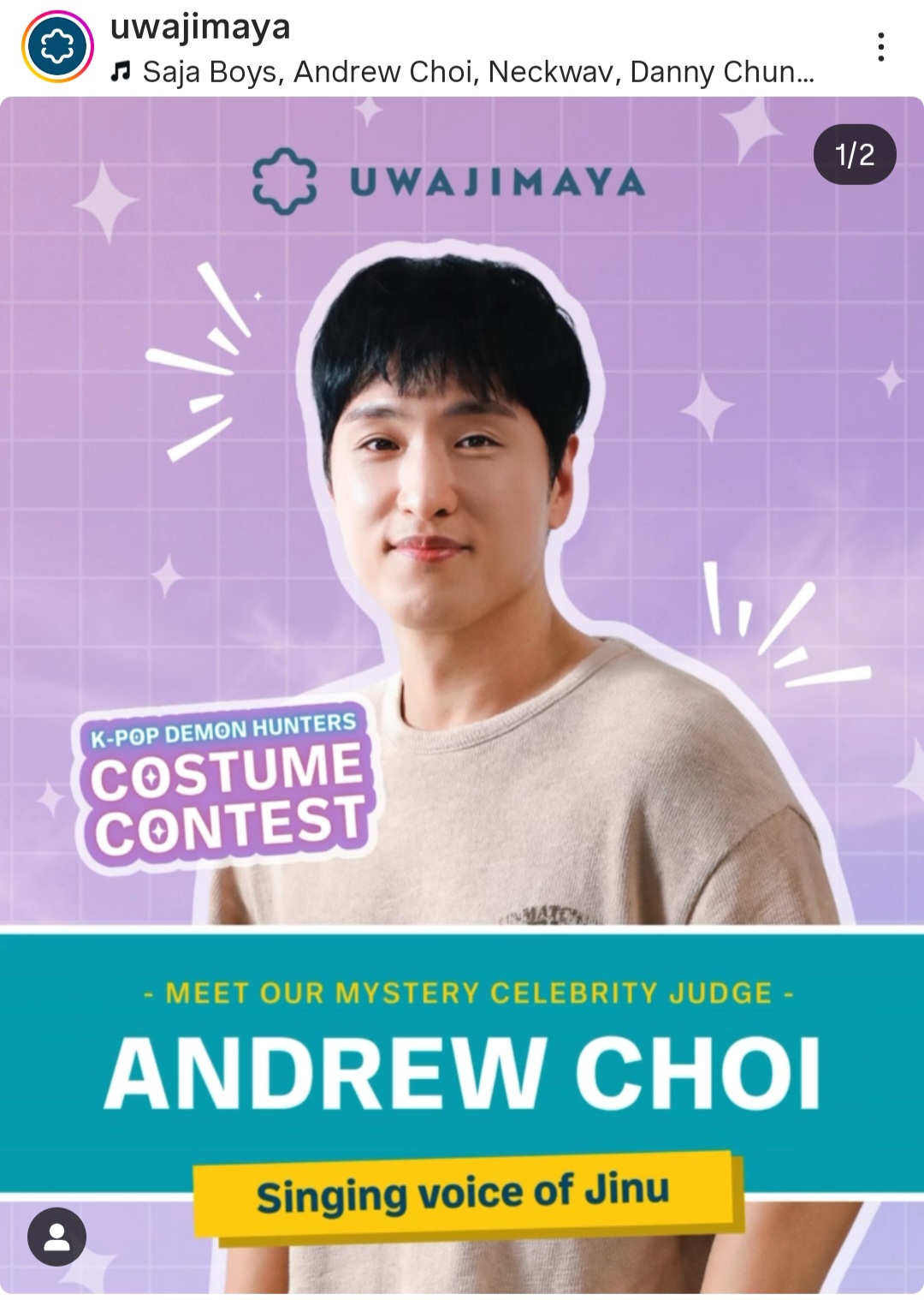ƯÈ÷ À̹ø ÄÜÅ×½ºÆ®¿¡´Â ³ÝÇø¯½º ¾Ö´Ï¸ÞÀÌ¼Ç K-ÆË µ¥¸óÇåÅÍ(K-Pop Demon Hunters) ¿¡¼ »çÀÚº¸ÀÌÁî(Saja Boys)¸â¹ö Áö´©(Jinu)ÀÇ ³ë·¡ ¸ñ¼Ò¸®¸¦ ¸ÃÀº °¡¼ö ¾Øµå·ù ÃÖ(Andrew Choi) °¡ Ưº° °Ô½ºÆ® ½É»çÀ§¿øÀ¸·Î Âü¿©ÇÕ´Ï´Ù. ÇöÀå¿¡¼´Â ÆÒµé°ú Âü°¡ÀÚµéÀÌ ÇÔ²² ¾î¿ì·¯Áö´Â Ȱ±âÂù K-ÆË ÃàÁ¦ ºÐÀ§±â°¡ ±â´ëµË´Ï´Ù.