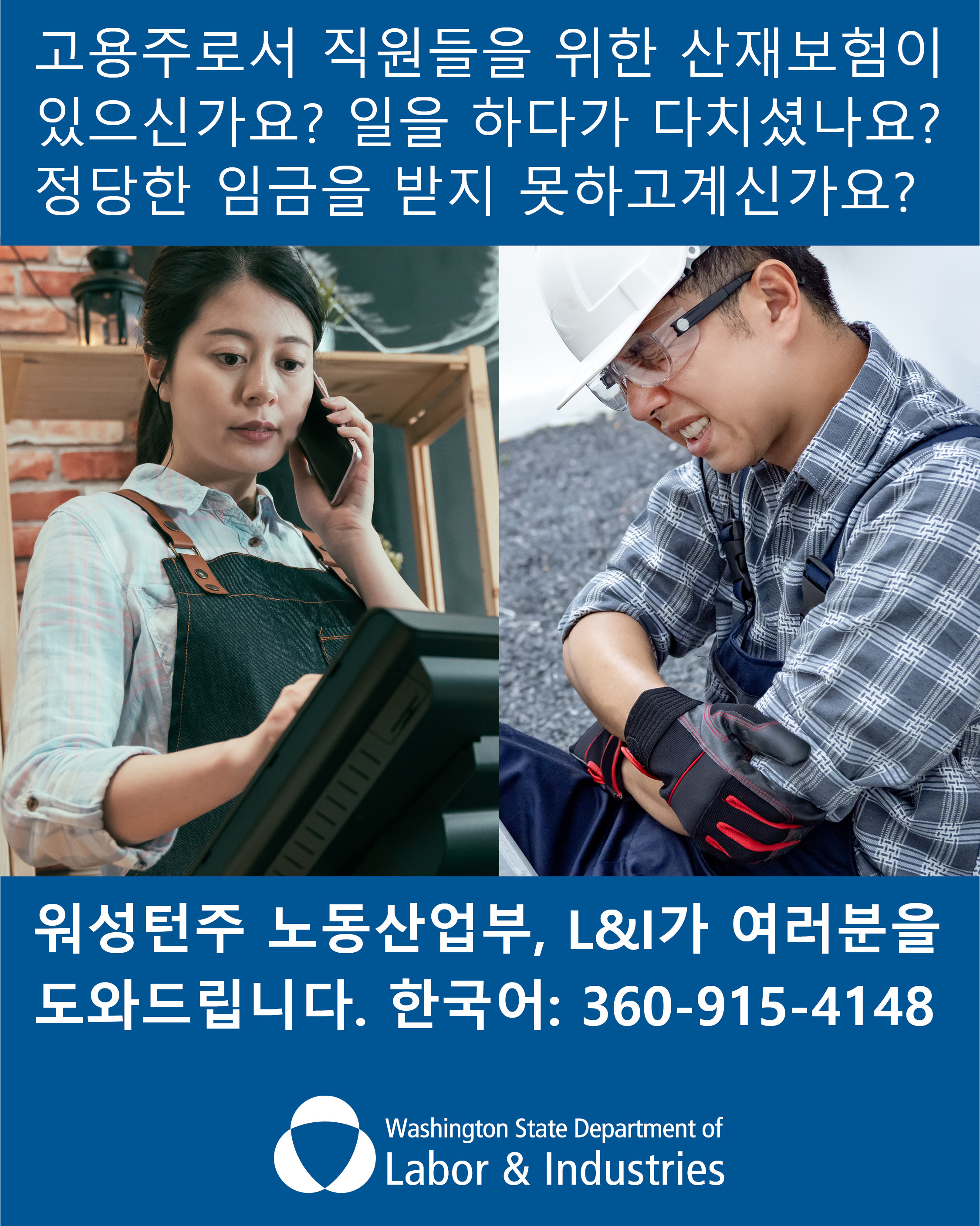 ¿ö½ÌÅÏÁÖ ³ëµ¿»ê¾÷ºÎ(L&I)´Â ¿ö½ÌÅÏÁÖ ¾ÈÀÇ ¸ðµç ±Ù·ÎÀÚ¸¦ º¸È£Çϰí, °í¿ëÁÖ ºÐµéÀÌ ¾Ë¾Æ¾ß ÇÒ Àǹ«¸¦ Àß ÀÌÇØÇϵµ·Ï µ½°í ÀÖ½À´Ï´Ù.