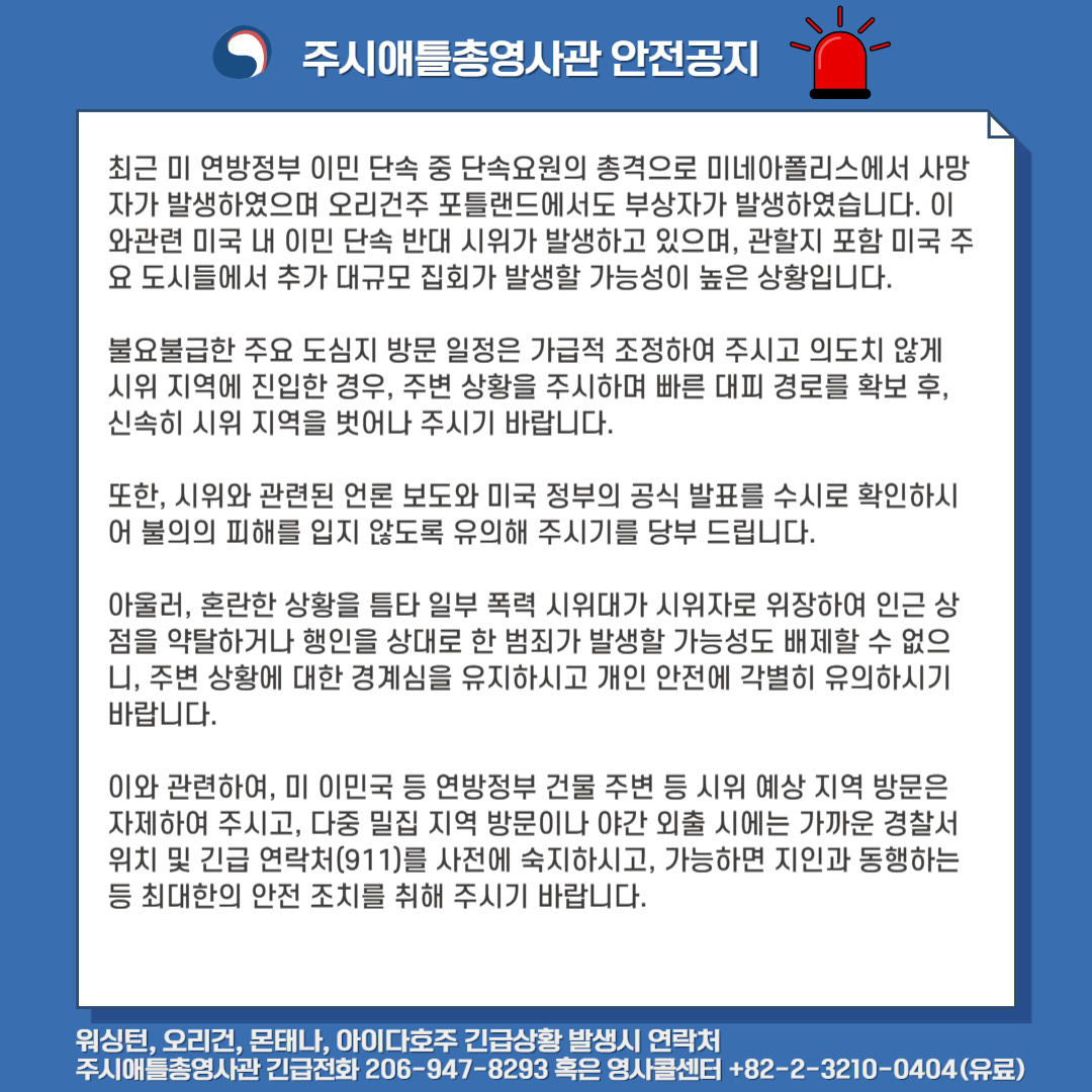 ¤· ¹Ì³×¾ÆÆú¸®½º ICE ÃÑ°Ý »ç¸ÁÀÚ ¹ß»ý, ¿À¸®°ÇÁÖ Æ÷Ʋ·£µå ÃÑ°Ý ÇÇÇØÀÚ ¹ß»ý °ü·Ã, ÁÖ½Ã¾ÖÆ²ÃÑ¿µ»ç°ü ¿µ»ç¾÷¹« °üÇÒÁö¿ª(¿ö½ÌÅÏÁÖ, ¿À¸®°ÇÁÖ, ¸óųªÁÖ, ¾ÆÀÌ´ÙÈ£ÁÖ) ³» ½ÃÀ§ ¹ß»ý °¡´É¼ºÀÌ ³ôÀº »óȲÀÔ´Ï´Ù.