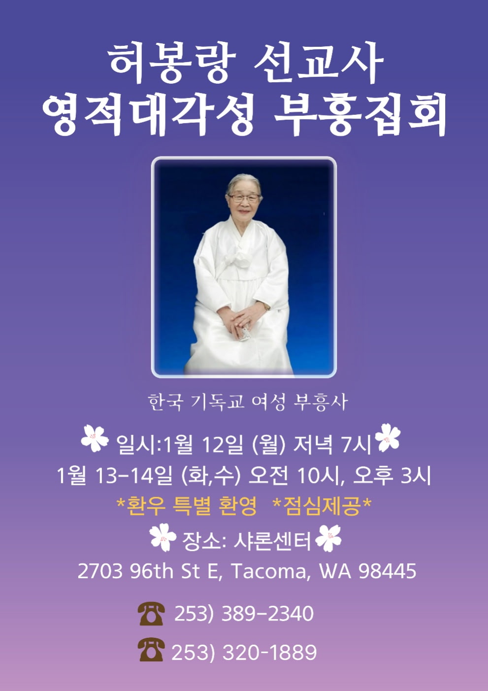 Çѱ¹ ±âµ¶±³ ¿©¼º ºÎÈï»ç·Î ¿À·£ ±â°£ »ç¿ªÇØ ¿Â ÇãºÀ¶û ¼±±³»ç¸¦ ÃÊÃ»ÇØ ¸»¾¸°ú ±âµµ·Î ¿µÀû ȸº¹À» ³ª´©´Â ºÎÈïÁýȸÀÔ´Ï´Ù.