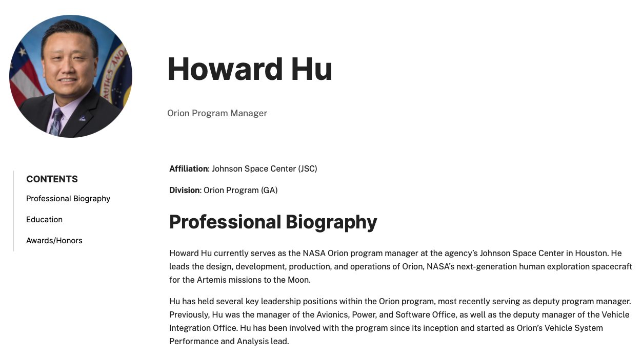 Áö¿ª ¾ð·Ð KOMO ´º½ºÀÇ º¸µµ¿¡ µû¸£¸é, NASAÀÇ Â÷¼¼´ë À¯ÀÎ ¿ìÁÖ¼±ÀÎ '¿À¸®¿Â(Orion)' ÇÁ·Î±×·¥À» ÃѰýÇϰí ÀÖ´Â ÇÏ¿öµå ÈÄ(Howard Hu) ¸Å´ÏÀú´Â ¼î¾î¶óÀο¡¼ ÀÚ¶ó ¿ö½ÌÅÏ ´ëÇб³(UW)¸¦ Á¹¾÷ÇÑ ¿ö½ÌÅÏÁÖ Åä¹ÚÀÌÀÔ´Ï´Ù.