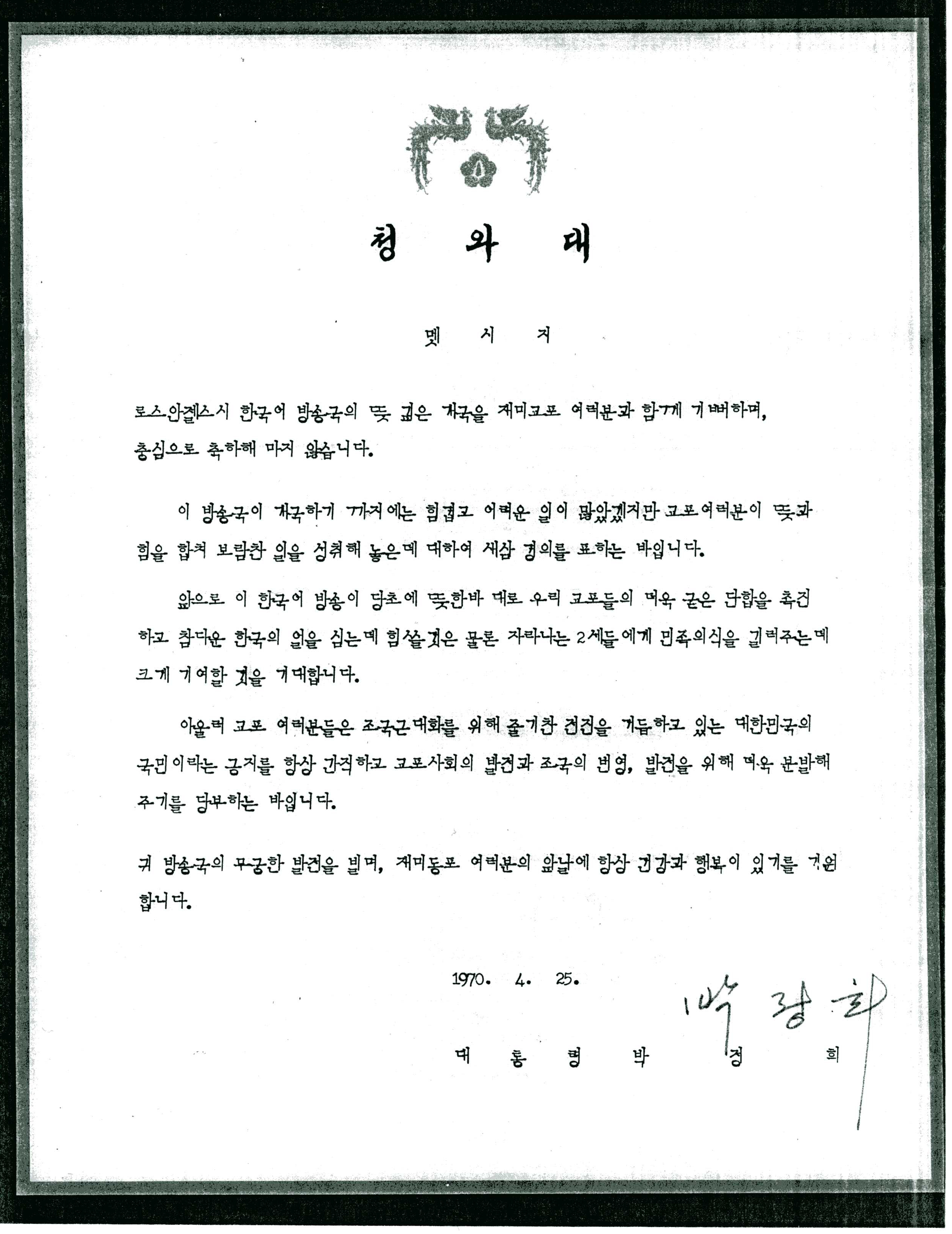 ÇØ¿Ü ÇÑÀÎ ¹æ¼ÛÀÇ »ê¿ª»çÀÌÀÚ ¿µ¿øÇÑ ¿¬Ãâ°¡·Î ºÒ¸®´Â ¼Á¤ÀÚ »çÀåÀº 1964³â ¹Ì±¹À¸·Î À̹ÎÀ» ¶°³ µÚ, À̵ëÇØÀÎ 1965³â 6¿ù 12ÀÏ ·Î½º¾ØÁ©·¹½º¿¡¼ ¼¼°è ÃÖÃÊ·Î Çѱ¹¾î ¶óµð¿À ¹æ¼ÛÀ» ¼ÛÃâÇÏ¸ç ¹ÌÁÖ ÇÑÀÎ ¹æ¼ÛÀÇ Æ÷¹®À» ¿¾ú½À´Ï´Ù. ÀÌÈÄ 1970³â¿¡´Â KBOA ÇÑÀÎ ¹æ¼ÛÀ» °³±¹Çϸç À̱¹¶¥¿¡ Á¤ÂøÇÑ ÇÑÀεéÀÇ Çâ¼ö¸¦ ´Þ·¡°í µ¿Áú°¨À» À̾îÁÖ´Â ÁßÃßÀûÀÎ ¿ªÇÒÀ» ÇØ¿Ô½À´Ï´Ù.