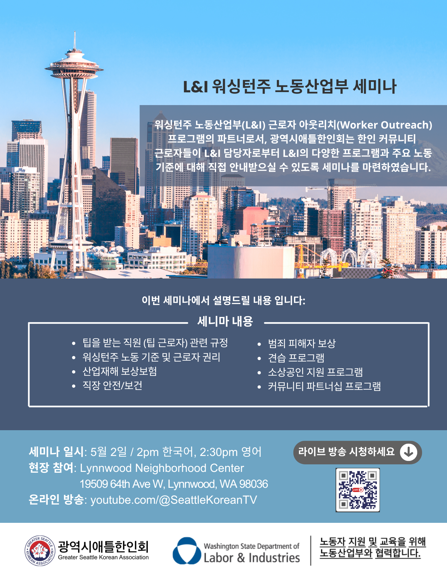 ±¤¿ª½Ã¾ÖƲÇÑÀÎȸ(GSKA)°¡ ´Ù°¡¿À´Â 'K-Fair Ãë¾÷¹Ú¶÷ȸ'¿¡¼ ¿ö½ÌÅÏÁÖ ³ëµ¿»ê¾÷ºÎ(L&I)¿Í Çù·ÂÇØ Áö¿ª »çȸ ±Ù·ÎÀÚµéÀ» À§ÇÑ '±Ù·ÎÀÚ ±Ç¸® ¼¼¹Ì³ª'¸¦ ¹«·á·Î °³ÃÖÇÕ´Ï´Ù.